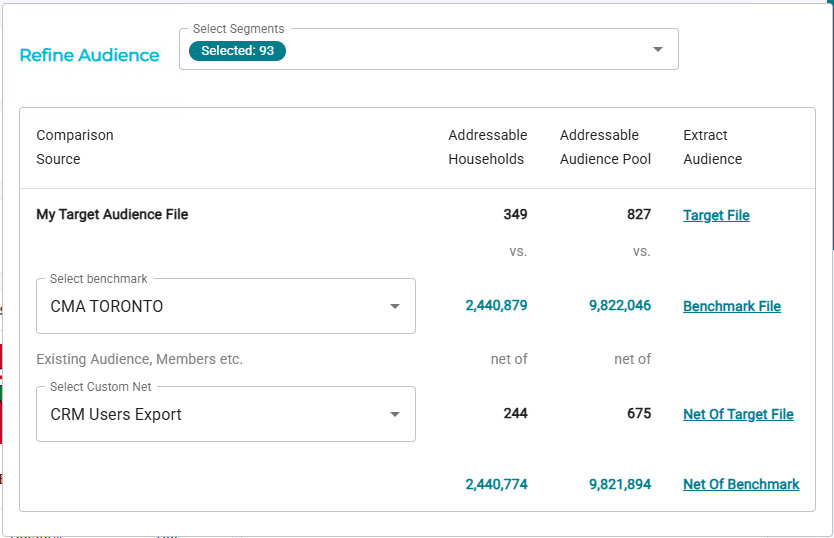 • Extract Audience: Row-level links to extract the Target File or Benchmark File audiences