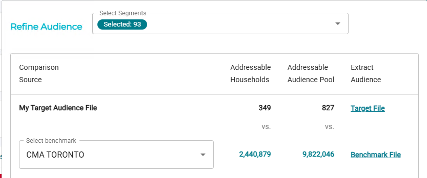 The Refine Audience Side bar now includes a redesigned grid that makes it easy to compare your Target report file to a Benchmark file, select look alike segments, and then extract audiences for activation in DSPs.
